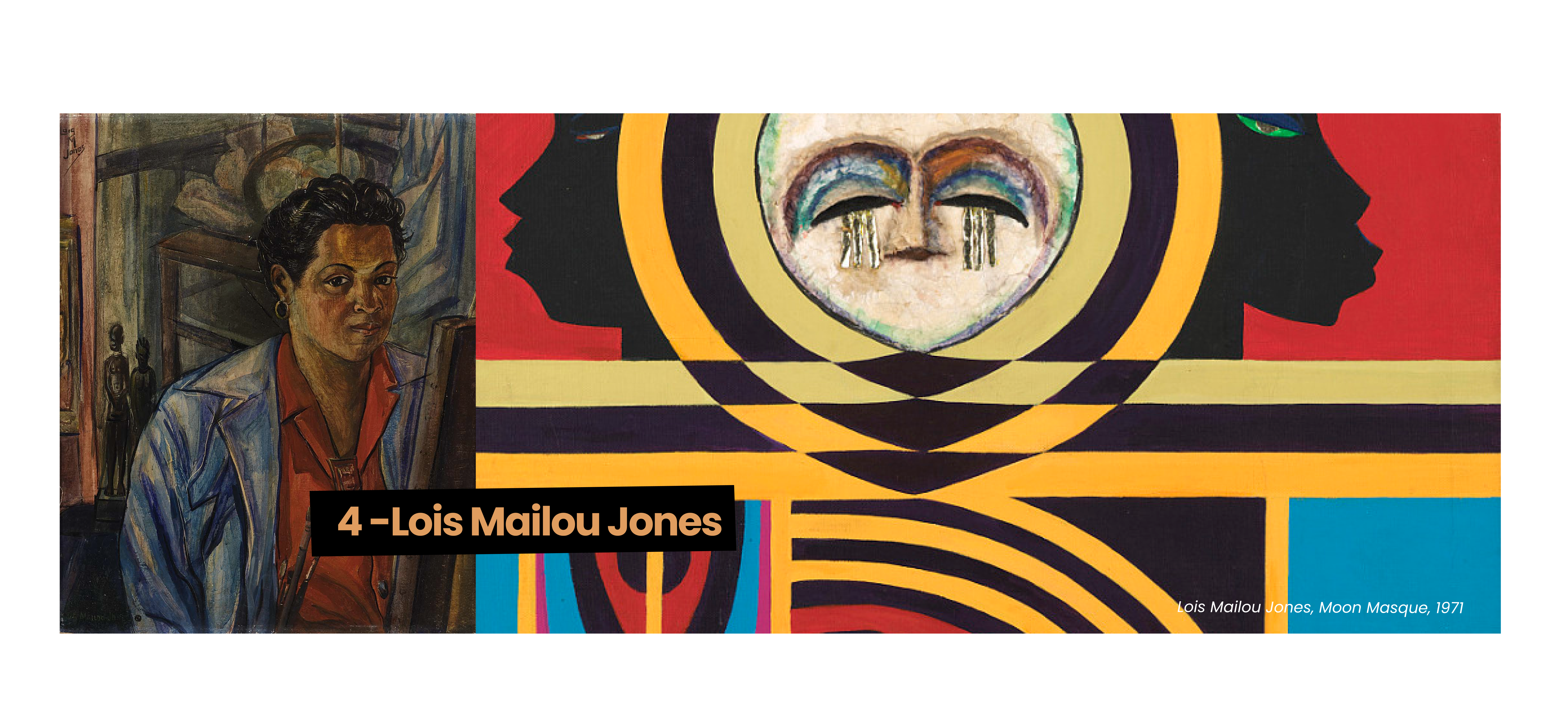 Lois Mailou Jones, figure de la Renaissance de Harlem, a marqué l’art contemporain américain. Née en 1905 à Boston, elle est la première femme noire américaine diplômée de l'École du musée des Beaux-Arts de Boston. À seulement 18 ans, elle réalise sa première exposition personnelle. En 1930, elle rejoint l'Université Howard à Harlem. Pour échapper à la ségrégation, Lois Mailou Jones part pour Paris où elle étudie à l'Académie Julian. Dans la ville de l’avant-garde, elle découvre les arts africains. En 1995, elle devient la première femme afro-américaine admise à la Société des artistes de Washington. Lois Mailou Jones a exploré des domaines variés tout au long de sa carrière artistique tels que le textile, la nature morte, la scène de genre et le portrait. Artiste, Styliste et professeure, elle a mené un parcours remarquable consacré à la valorisation de l'art afro-américain.