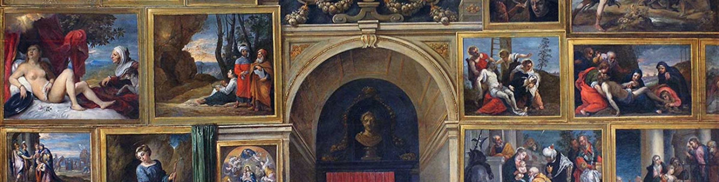 David Teniers le Jeune, L’Archiduc Léopold Guillaume dans sa galerie de peinture italienne (détail), 1651, huile sur toile, 96 x 129 cm, Musées royaux des beaux-arts de Belgique.